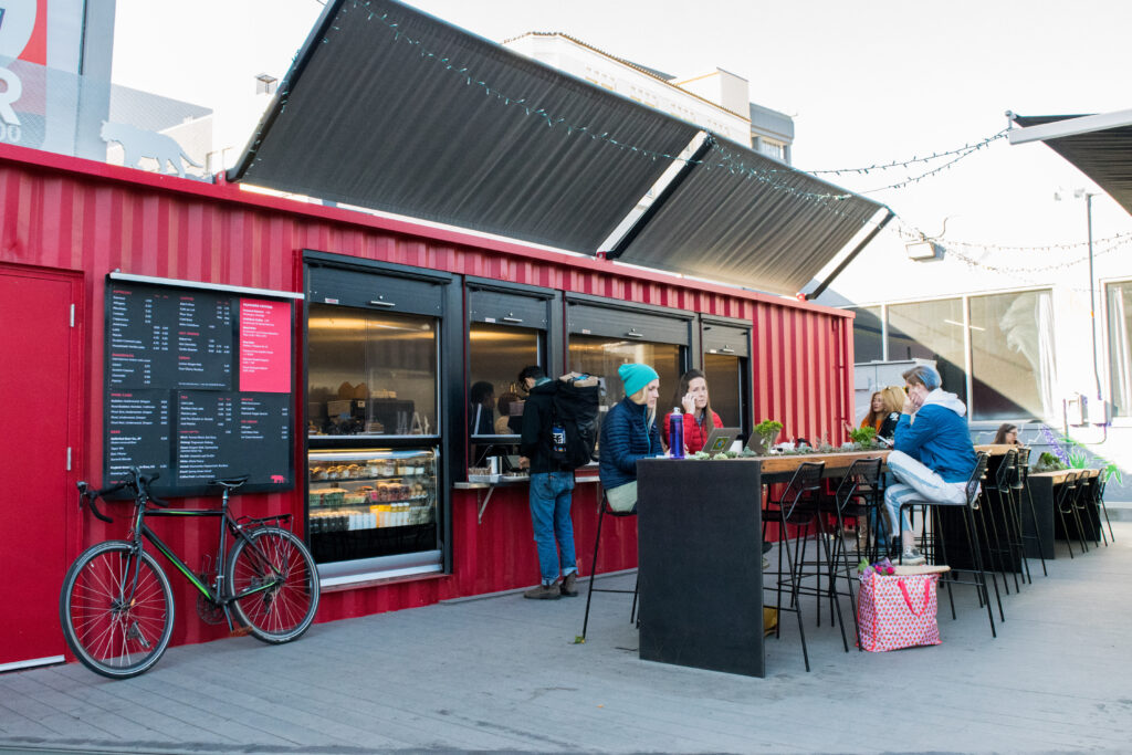 Freudiger says the beauty of container cafés is that they can be where typical retail can’t, such as their location in an underused parking lot. But just because a container can fit on a site doesn’t necessarily mean it would be the best location for a café. “The same concerns around foot traffic, parking, and community-building need to be applied to a container cafe.”