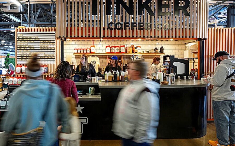 This same community spirit inspired Tinker Coffee’s first café location inside The AMP, an artisan marketplace and food hall in Indianapolis. The AMP serves as a diverse gathering space for local brands, each operating out of a brightly-colored shipping container.