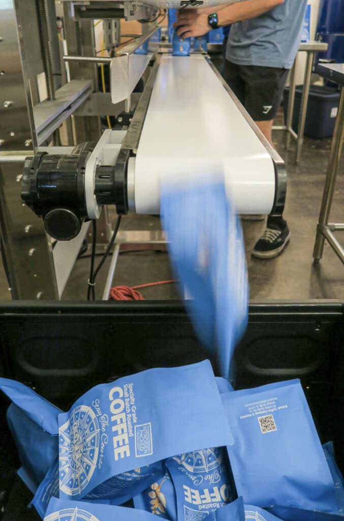 Moving into the supermarket coffee space also presents a scaling issue where it can be hard to resist making too many compromises to meet higher demands. Whalen shared that accommodating the demands of 258 stores was initially tricky as they relied on their experienced staff to ensure quality and consistency. “We all put in a lot of overtime, especially for tasks that don’t affect quality, like filling and stickering bags and boxing and palletizing the coffee,” he says. Before, roasters were involved in all steps of coffee production: bagging, labeling, and shipping coffee. To ensure quality standards remain high (and to avoid workers stretching themselves across multiple tasks), Whelan expanded the production team and began differentiating tasks, allowing them to scale up.