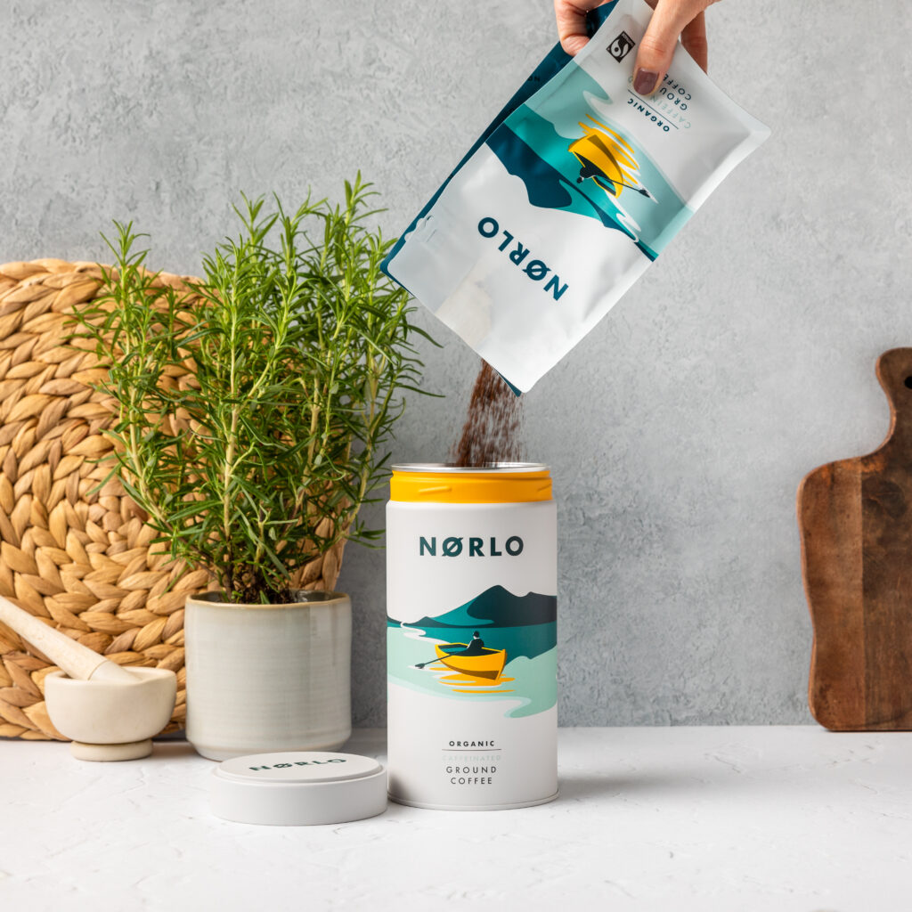 “Most retail coffee bags are composed of multiple layers, each of which has to be separated before disposal, which, of course, few people do. Aluminum tins are infinitely recyclable, plus they’re reusable too,” explains Dan Norman, co-founder of Norlo, a coffee brand based in the UK. He runs the company alongside his wife, Steph Norman.