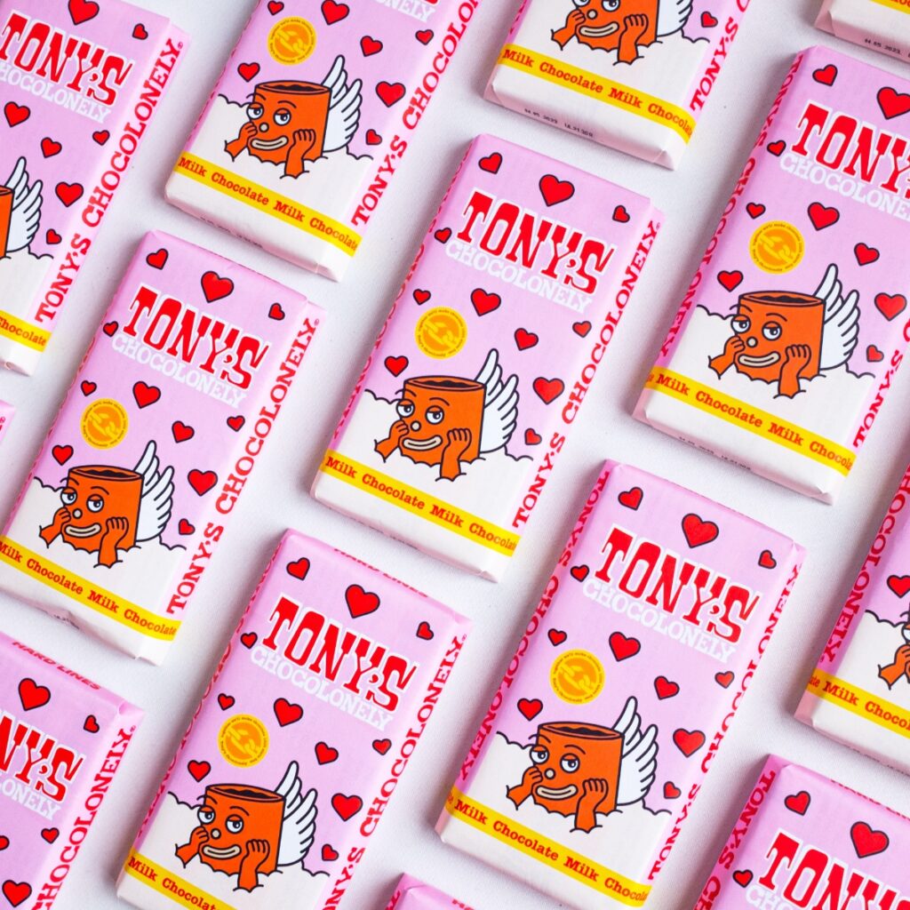 Crafting a cross-collaboration can take many different forms. In February of 2022, Wales-based coffee roastery Hard Lines Coffee teamed up with Dutch chocolate company Tony’s Chocolonely to send out 150 free co-branded chocolate bars to people who ordered their coffee as part of a Valentine’s Day special. The bars were co-branded, featuring Tony’s Chocolonely fonts and Hard Line’s artwork featuring their distinctive coffee mug logo in shades of pink, white, and red.