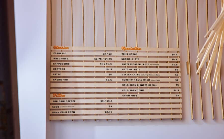 Coffee shops often find it helpful to advertise unique specialty drinks with images, either in-store or on Instagram, to spread awareness of a beverage different from what customers usually order. Klatch Coffee, a roastery with retail locations across Southern California, posts photos and descriptions of its signature drinks on Instagram to entice followers to try new offerings like The Everyman, a seasonal drink made with Ethiopian nitro cold brew poured on top of peach puree and topped with a squeeze of lime. “The nitro adds a creaminess that pairs with the peach, and then lime livens it all up,” says barista and director of training Heather Perry.