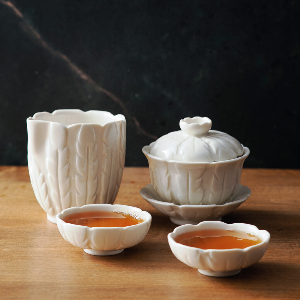 “To me, the point of making something by hand is the human connection, and you either feel that or don’t when you pick up the pot,” Chutinthranond says. To hold a piece in hand, she seeks another hand, mediated through the markings of manually contoured porcelain—”a challenging and rapturous material to work with.”