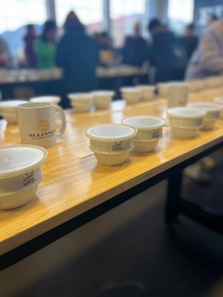 Cup the World, hosted by Alliance for Coffee Excellence in the warehouse space of Finex Cookware, gave coffee enthusiasts a chance to taste twelve 2022 Cup of Excellence winners. Cup of Excellence (COE) is a highly selective and prestigious competition and auction for some of the highest quality coffees in the world. COE winners usually get premium prices for their coffees; the 2021 Ecuadorian COE winners auctioned their coffees for an average of $33.55 per pound; the commodity price for arabica coffee at that time averaged at about $2.49 per pound. In addition to ensuring farmers are compensated fairly for their excellent coffees, COE supports innovation and education on coffee farms and fosters transparency and quality in production.