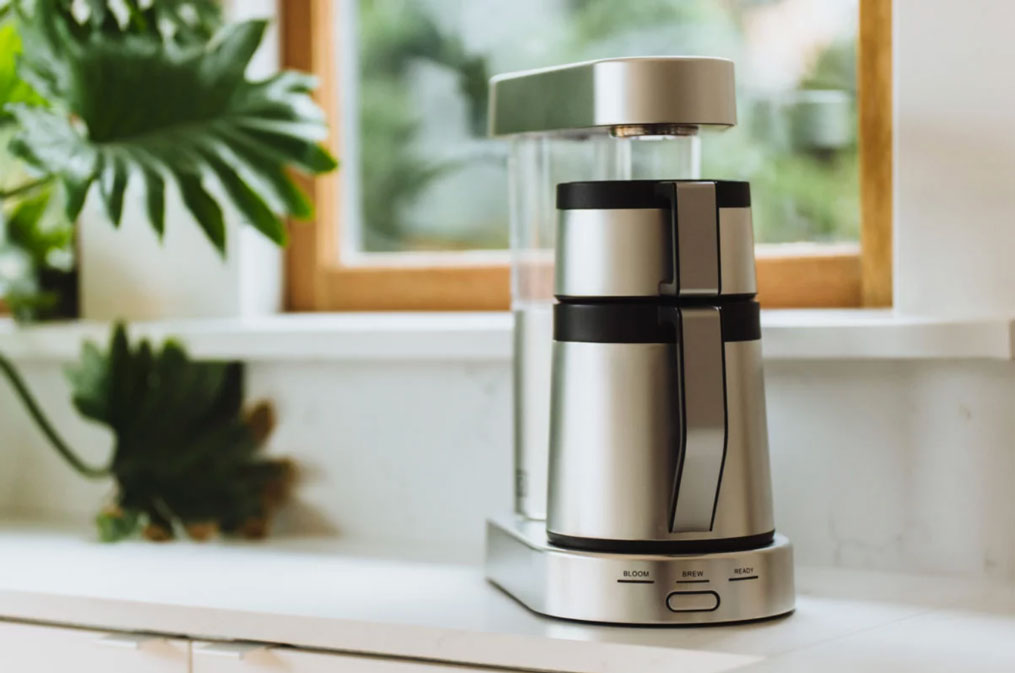 Mark Hellweg, the owner and CEO of Ratio Coffee, designed the machine with his ideal cup of coffee in mind. The machine has three minimalistic settings—bloom, brew, and ready—meaning users have minimal interaction with the product. The Ratio Eight’s original design features a clean look with glass and wood paneling. It is offered with a 40-ounce thermal carafe option, an alternative for coffee drinkers who don’t drink their coffee right away and want their coffee to stay hotter for longer.