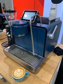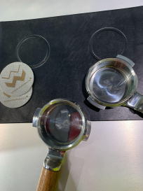 Still resting assuredly in its position of Best New Product for Consumer Coffee Preparation and Serving at the New Orleans Coffee Expo in 2021, the Key Coffee Grinder was spotted a few times around the show in Boston. The grinder accompanied the Under Counter 2-Group machine on the MAVAM stand, creating an elegantly understated espresso setup.