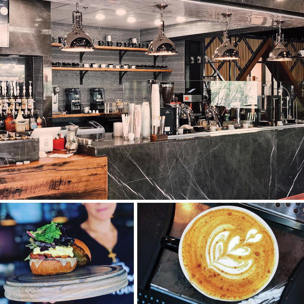 Beverage options include a wet or dry cappuccino, Ethiopian espresso (with strawberry and chocolate flavor notes), or specialty coffee brewed on the Alpha Dominche Steampunk. A simple cup of coffee can be prepared drip, cold-brewed, or nitro. The food menus provide a wide array of options, including croque madame and croque monsieur sandwiches or the quirky named “divorced eggs” (flour tortilla with eggs, black beans, pico de gallo, and red and green chili sauce) for breakfast, and salads, burgers, tacos, or a plethora of sandwiches, like the “Bodacious BLT” or Reuben, for lunch.
