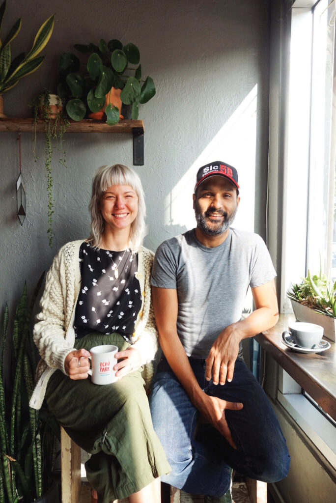 Janine Awan and her husband Saadat Awan of Woodcat Coffee in Los Angeles started with limited furniture and a limited menu. After gaining awareness in the community, the couple was able to afford to do more.