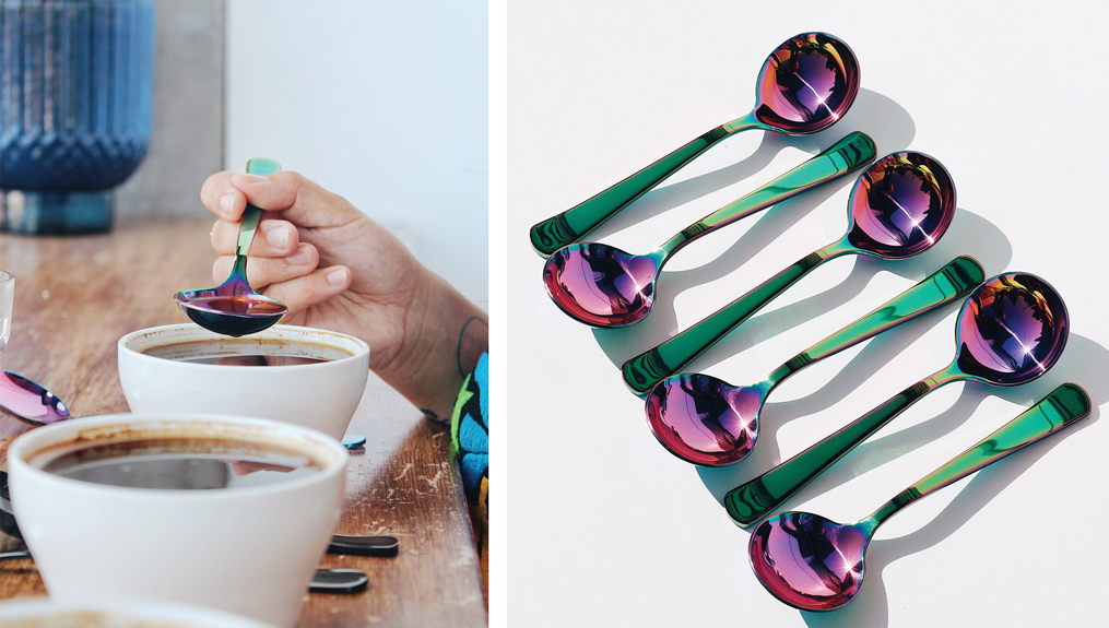 Meanwhile, the equipment behind the process can make a serious difference when it comes to taste. Many companies are forging the way with forward-thinking products, from Loveramics cups that will tell you when the water temperature is just right, to kettles that produce precise temperatures down to the one degree from Brewista and Fellow. And then there are those who bring a design-forward approach to the experience, like notNeutral’s SCA-standard MENO Cupping Vessels, our proudly stand out, like Umeshiso’s rainbow cupping spoons.