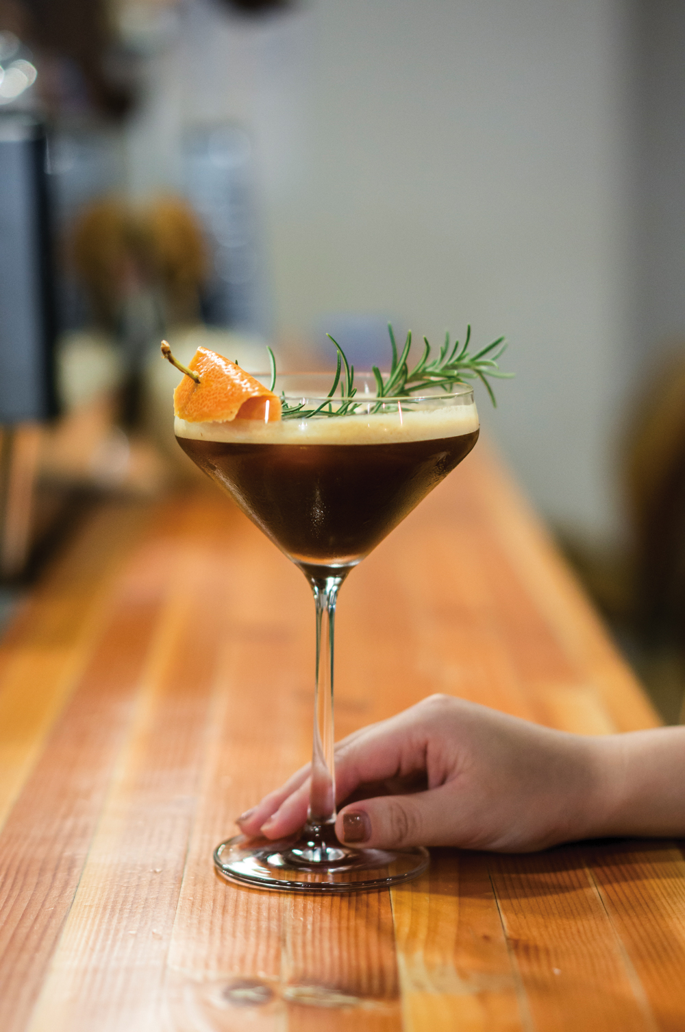 Often, rising to that creative challenge requires commitment. Ghost Note’s Andrews spent four months perfecting a drink called the Sun Ship, made with espresso, smoked grapefruit rosemary syrup, coconut water, sparkling water, and lime.