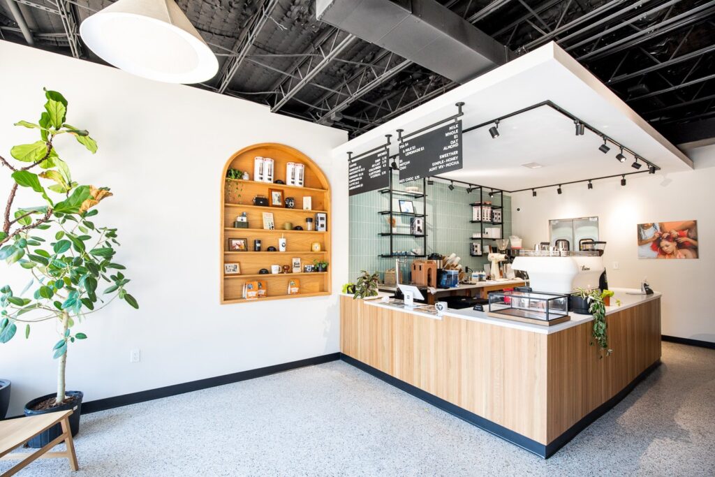 So, in 2019, Fender, along with co-founders Marcus Hollinger and John Onwuchekwahe, began Portrait Coffee, seeking to “pour a new narrative” (which has become the brand’s motto). Fender and his team sought to create a space that better represents and honors the work of African coffee farmers and creates job opportunities for Black and Brown people. They set up Portrait in the historic West End neighborhood of Atlanta, Georgia, and in August of 2023, they opened their first retail location in the Lottie Watkins Building, named after Atlanta’s first Black real estate agent.