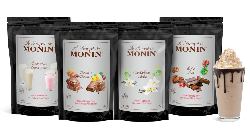 You’re one scoop away from delicious and decadent frappés with Monin’s new Natural Frappé Bases. Four clean label powdered frappé bases, made without any artificial ingredients, are now available in Vanilla Bean, Mocha, Chocolate, and Cream (Plain). Blend with ice to enjoy or add a shot of espresso (or coffee) for a caffeine-friendly option. Each frappé pairs well with several Monin Syrups, Sauces, or Purées, which makes it easy to offer numerous flavor options to your customers. Each bag makes approximately 30 16-oz. beverages, and all four are available now on monin.com.