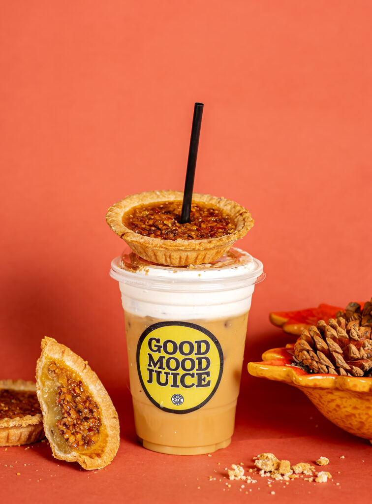 Their inspiration for the fall menu is rooted in holiday traditions, and they wanted to build off the success of last year’s surprise seasonal hit. “Everybody loved the [Pecan Pie Chai] last time, but they really wanted it earlier [in the season]—pecan pie is such a staple for Thanksgiving,” she says. “The flavor profiles for pecan pairs better in the fall, so this year we’ve sold way more than last year.”