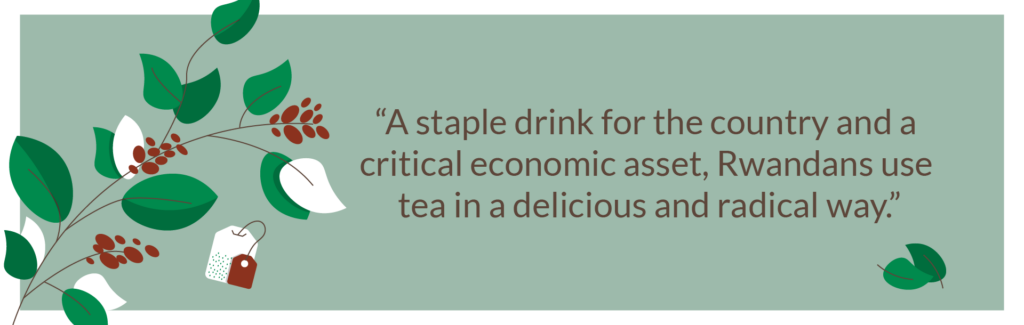 Visitors to Rwanda, a small landlocked country in the heart of Africa, might notice the city’s clean streets, rolling hills, and world-class coffee. While Rwanda is prized for its coffee abroad, Rwandan locals go for tea. A staple drink for the country and a critical economic asset, Rwandans use tea in a delicious and radical way.