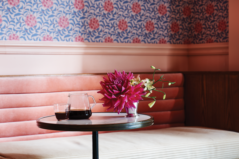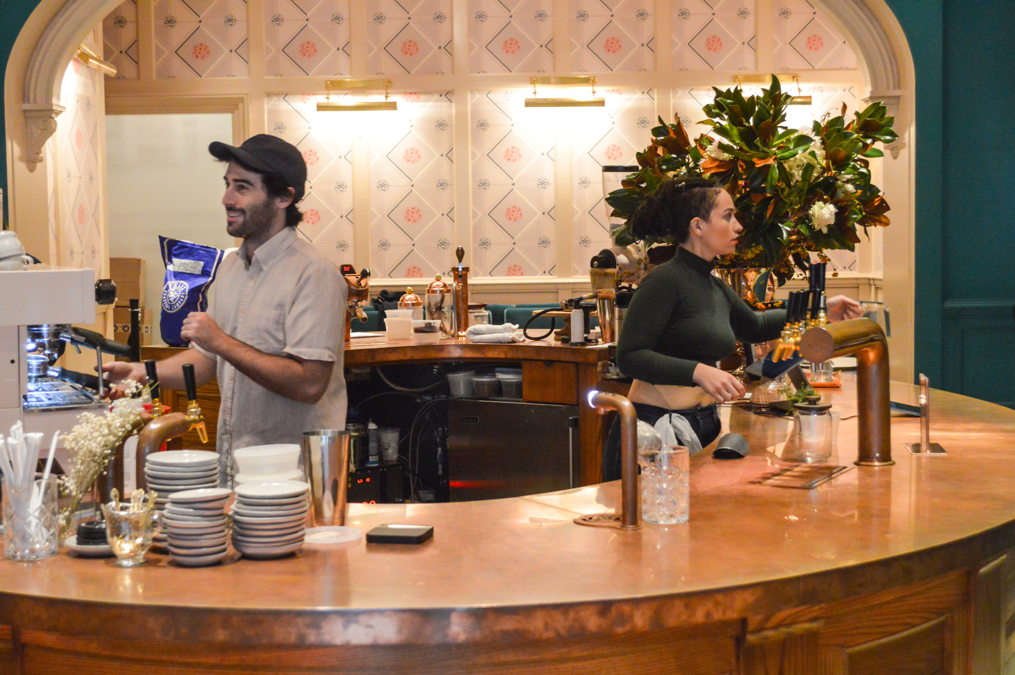 Stepping in from the bustle that is Park Avenue South, one is immediately greeted by a sense of elegance, style, and comfort. The first element that catches the eye may be the plush booths that run along the walls; or it could be the alternating teal-and-pink-patterned terrazzo floor; or perhaps it’s the grand wood-paneled coffee bar, behind which the baristas are busy carefully crafting their beverages.