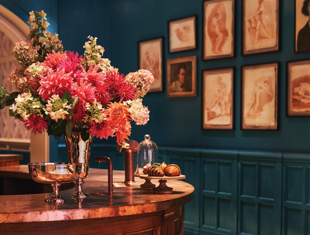 Moinian had seen Ken Fulk’s work in action during the 2017 New York Fashion Week, for which the renowned Bay Area designer was commissioned to create the VIP lounges. Blown away by the opulent, splashy style, Moinian immediately knew this was the designer he wanted to work with for Felix.