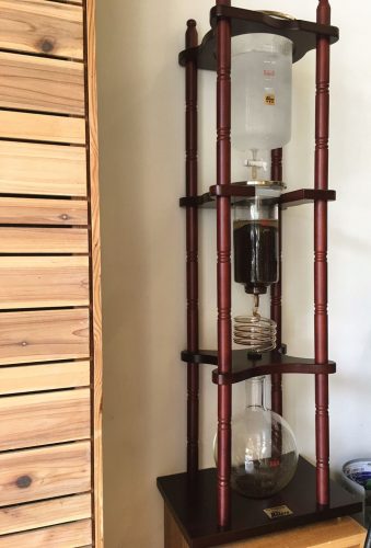 The bar, shaped like a backward “L,” seats four along the front, two more at the edge, with a covered patio outside the entrance accommodating just as many. Alongside one wall stands a three-foot-tall cold-drip brewer from the Taiwanese company Bolero. The brewing process takes about seven hours, producing three liters of coffee, one drop at a time, accumulating slowly as the ice melts over the grounds. There are no shortcuts at The Folks.